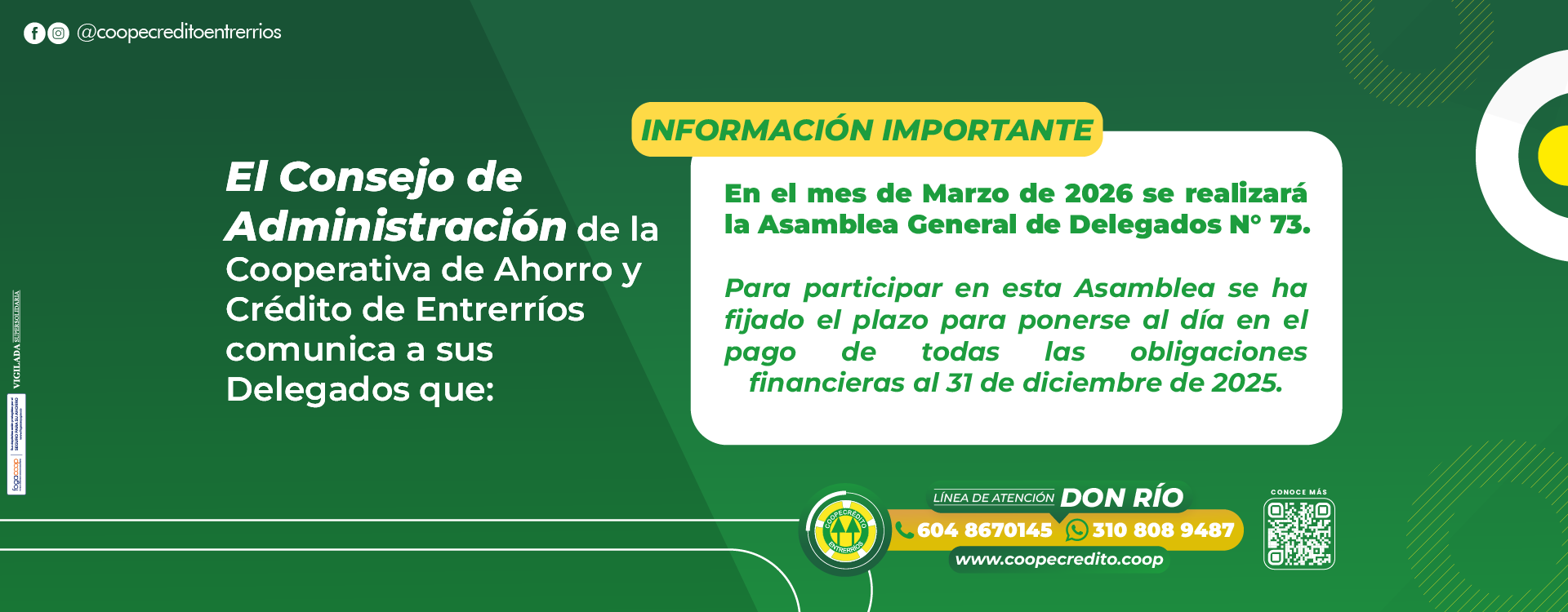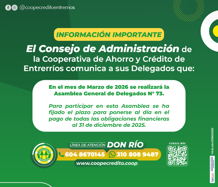 Somos una empresa de Economía Solidaria, autorizada para ejercer la Actividad Financiera, ubicada en el municipio de Entrerríos, norte de Antioquia, fundada el 05 de Julio de 1.969.