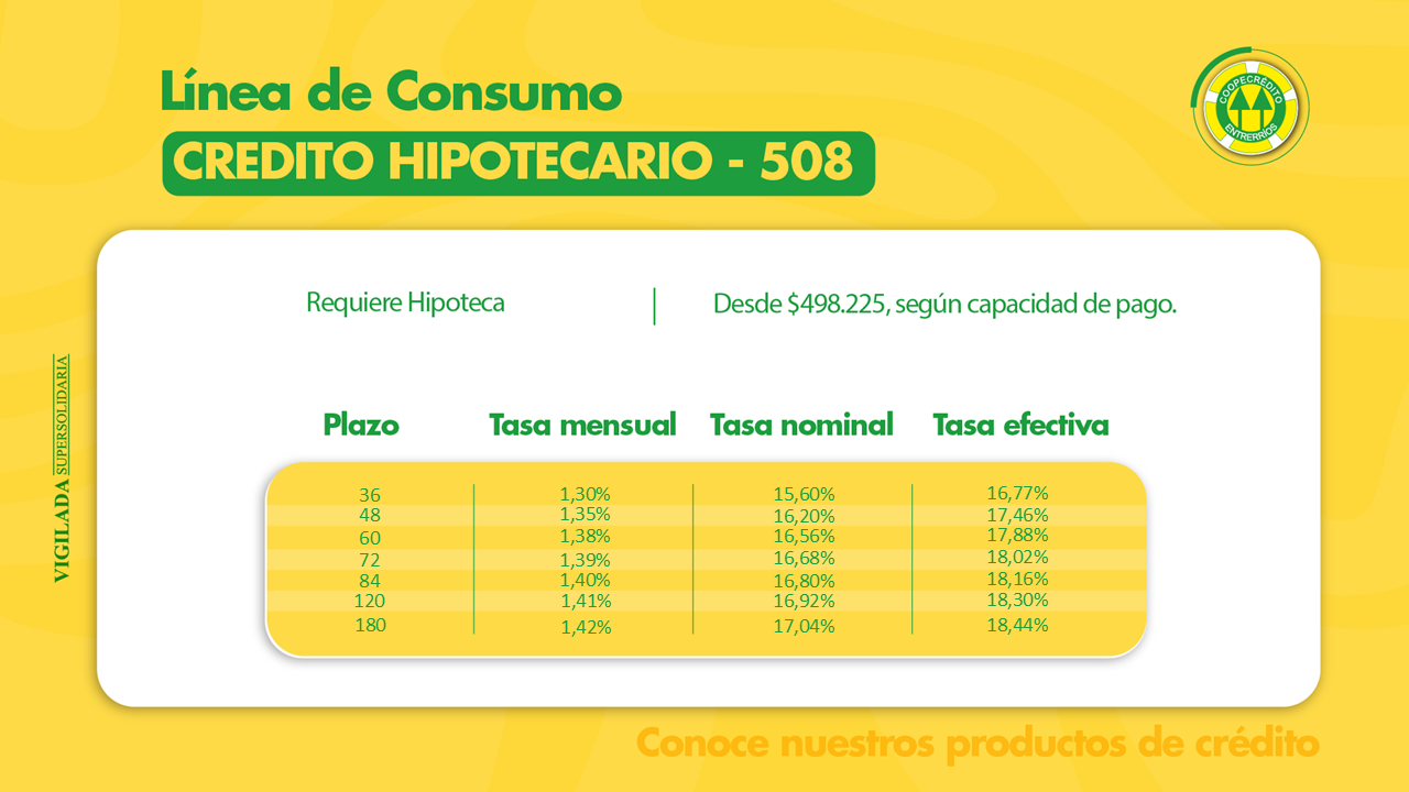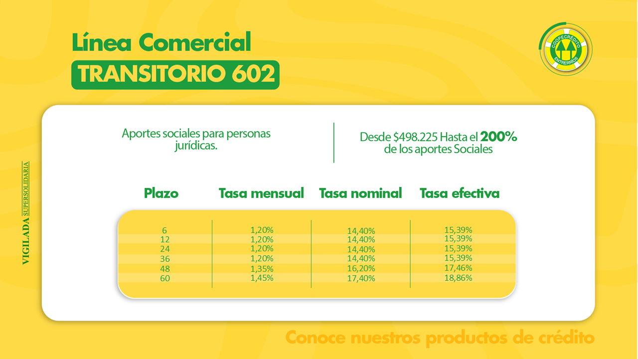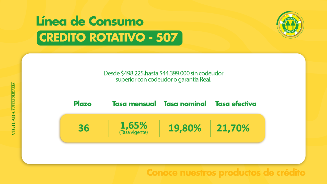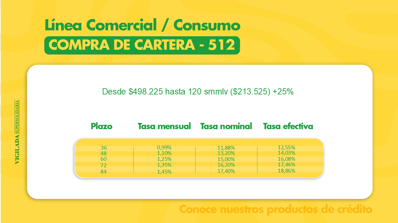 Coopecrédito tiene dos líneas de crédito; consumo y comercial