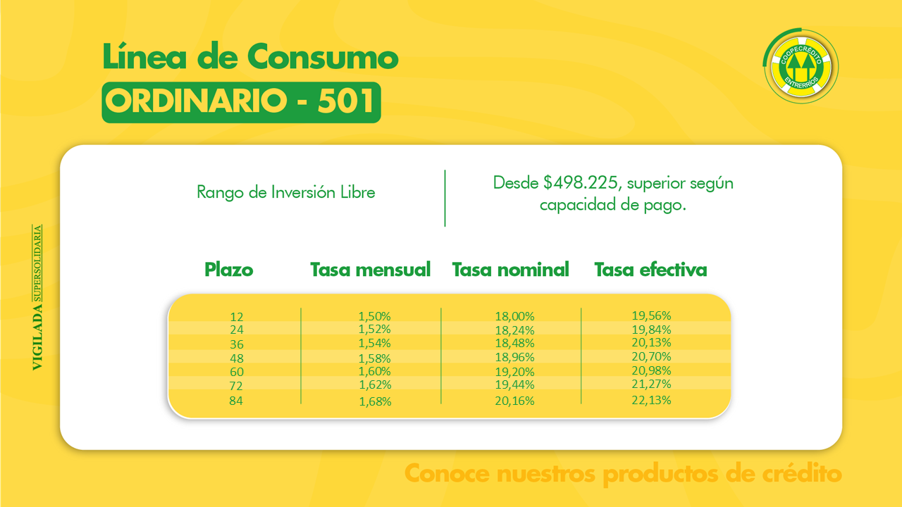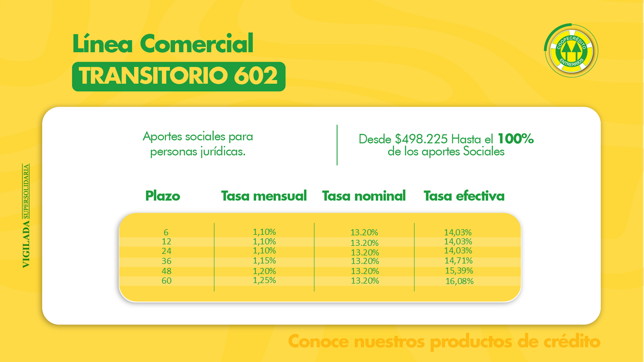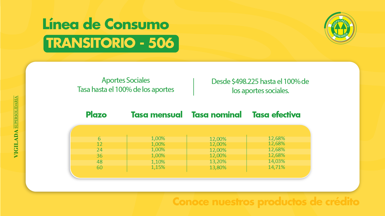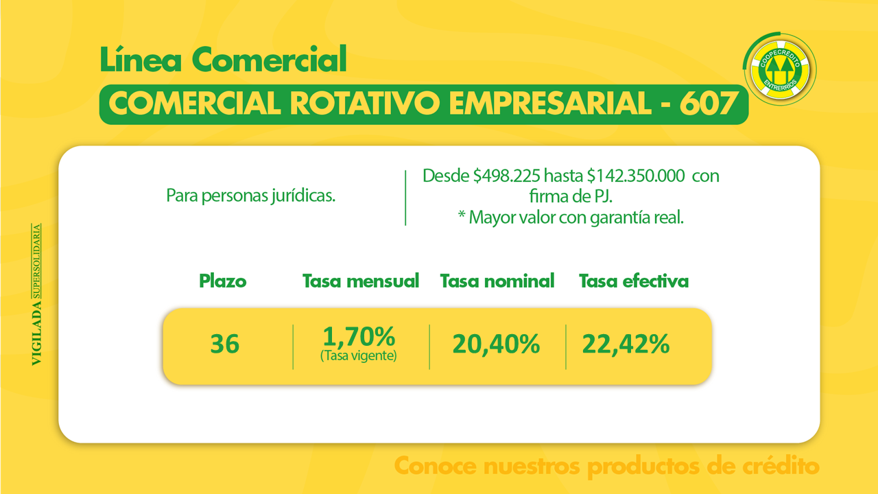 Coopecrédito tiene dos líneas de crédito; consumo y comercial